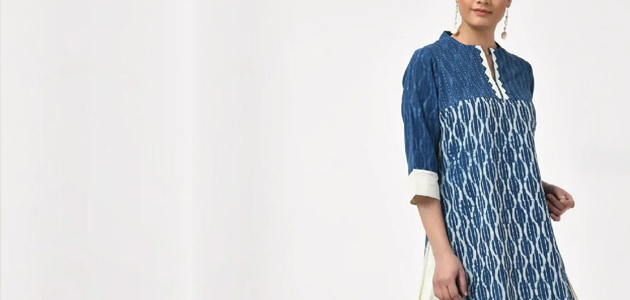 Square-Blocked Abstract Indigo Kurti